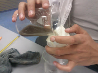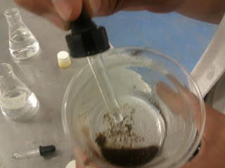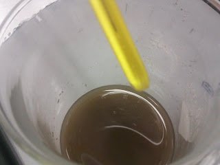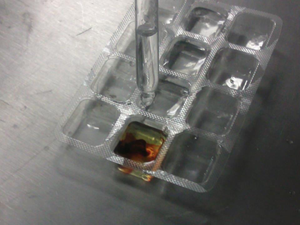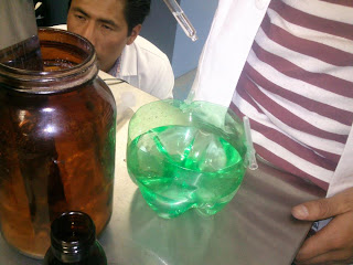 2. Agregar al recipiente 100 ml. de agua de la llave y disolver en ella 2 g. de KI. y agregar 6 gotas de fenolftaleína.