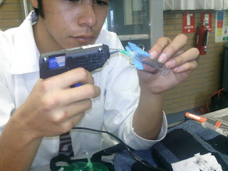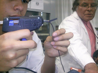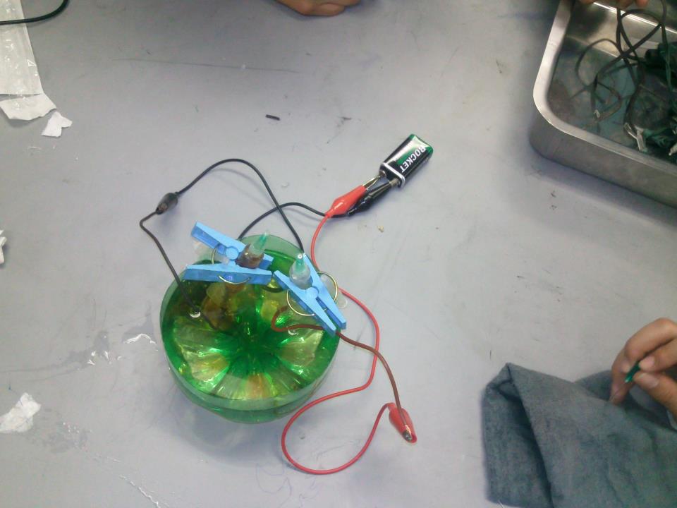 4. Los grafitos se sujetan con el cable y se sellan con silicón.