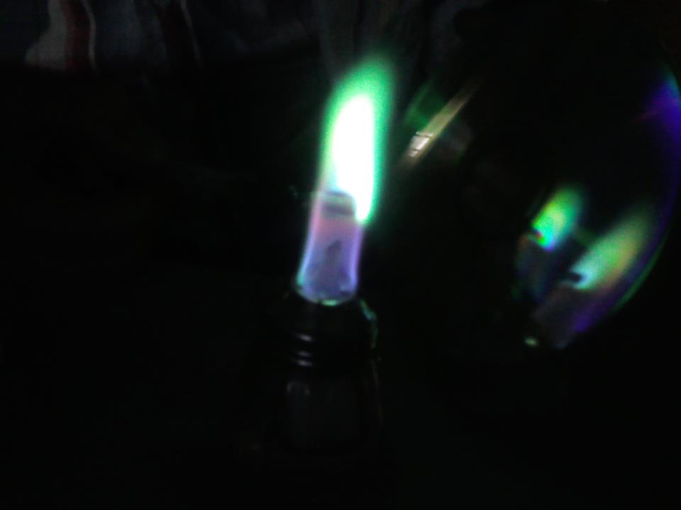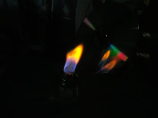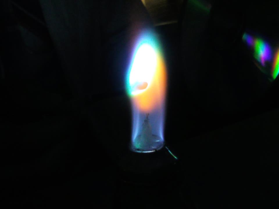 Esta es una practica en la que utilizamos el mechero con alcohol para realizarla utilizamos diferentes elementos como son el potasio, cloruro de sodio, etc... al ser introducidos en el fuego del mechero cambia de color con los elementos dependiendo de cual sea.